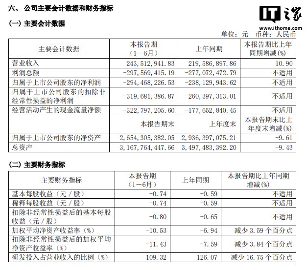 IT之家注意到,今年上半年,龙芯中科研发投入 266,201,468.08 元,研发投入占比高达 109.32%。